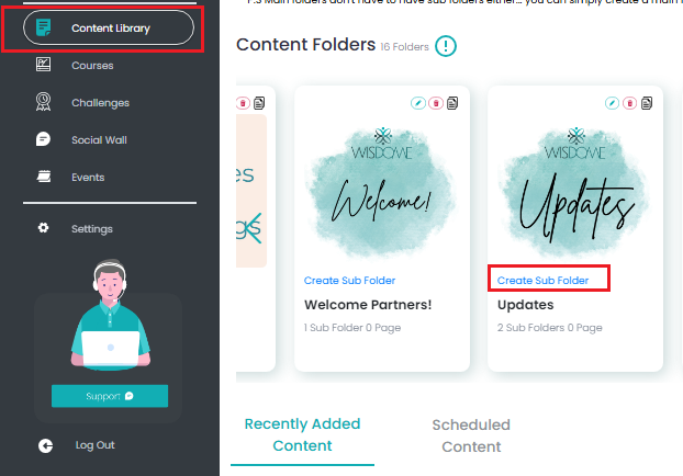 2. Select ‘Content Library Folder’ from the sidebar menu, then click ‘Create Sub Folder.’
