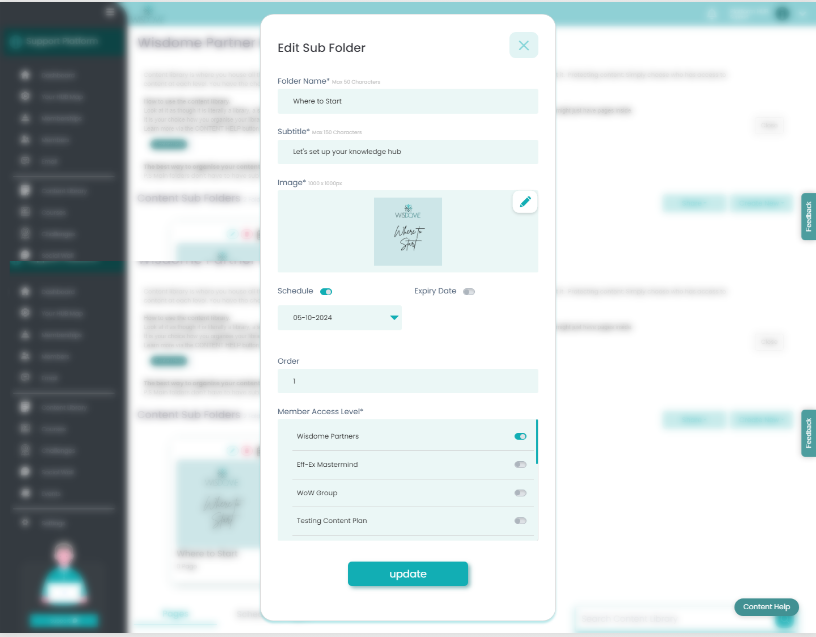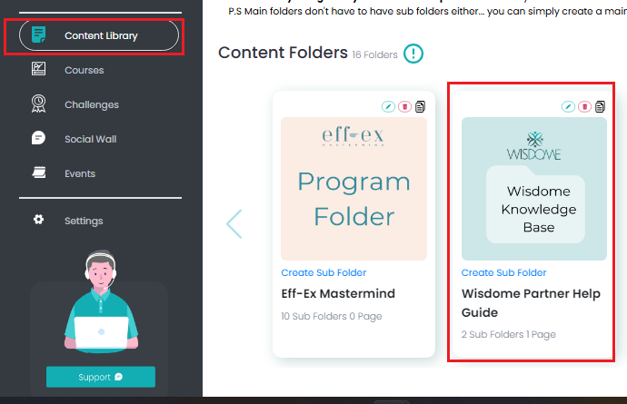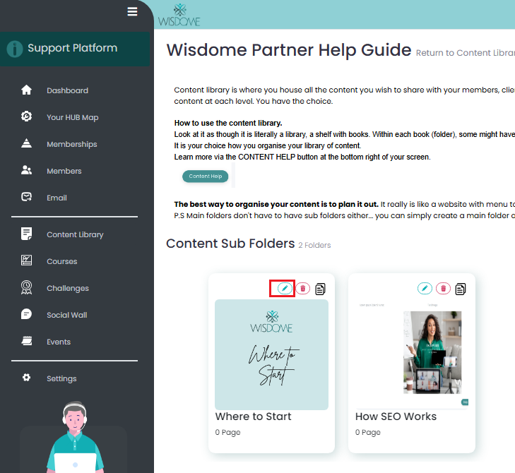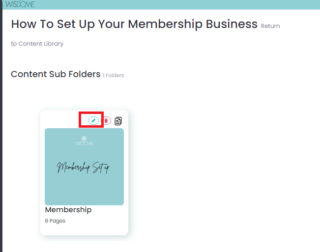 2. Select a Content Library subfolder that you wish to edit, and click the edit icon at the upper right corner of your subfolder.