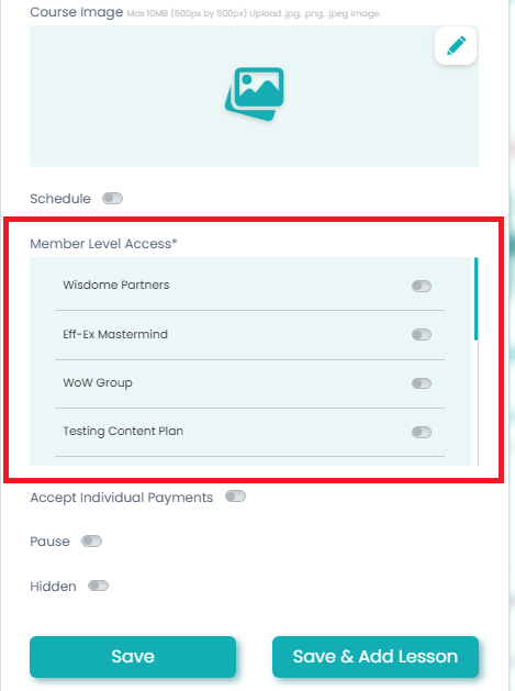 Select 'Member Level Access' if you're offering this course through a membership model.