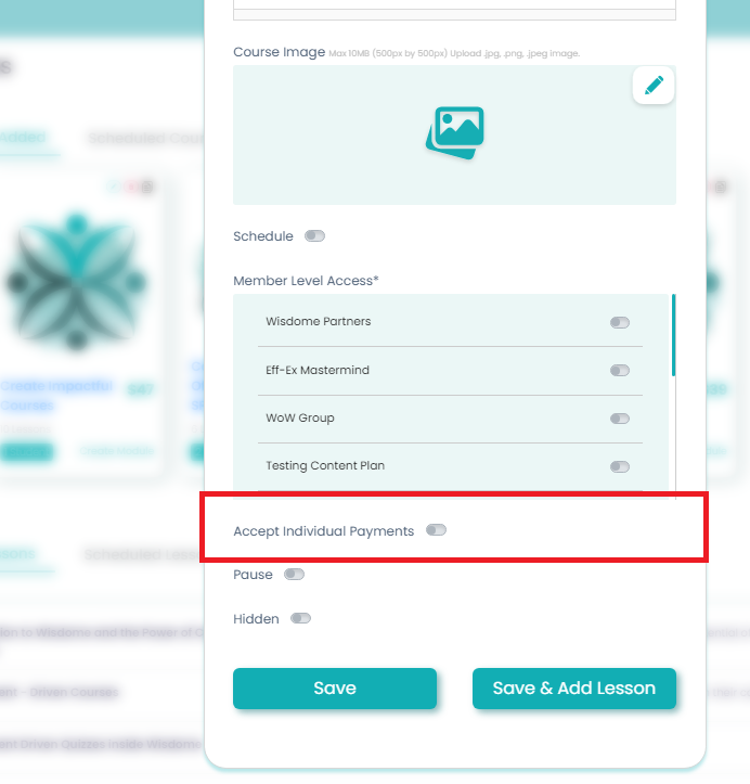 5. Select 'Accept Individual Payments' if you wish to sell your course individually instead of offering it as part of a membership.