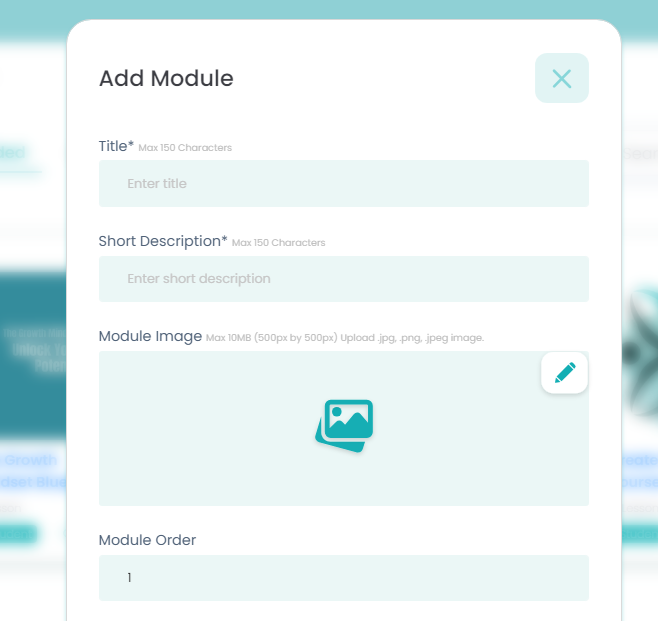 - Module Order: This is the sequence number of your module. For example, if this is your first module, enter 1.