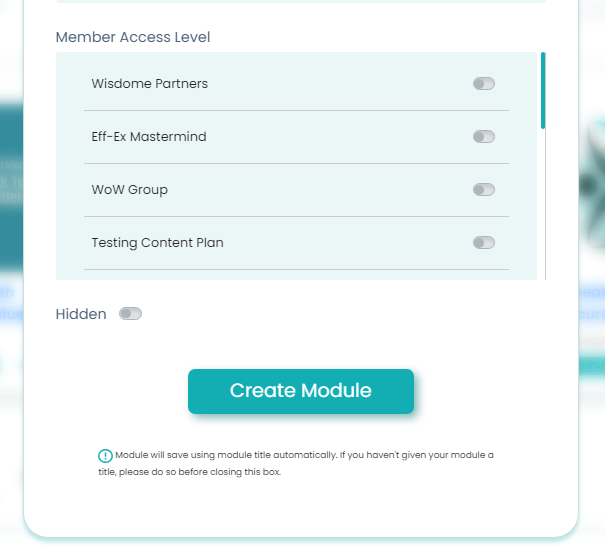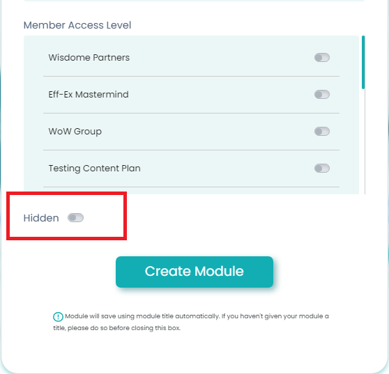 Note: Activating the 'Hidden' function will hide your module from all your students.