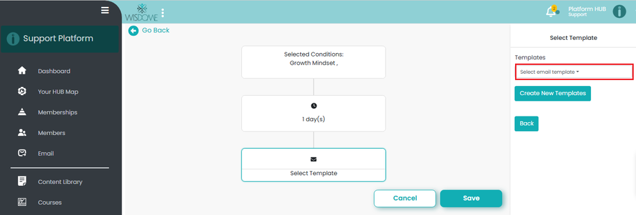 From the ‘Select Template’ dropdown menu, choose your desired email template.