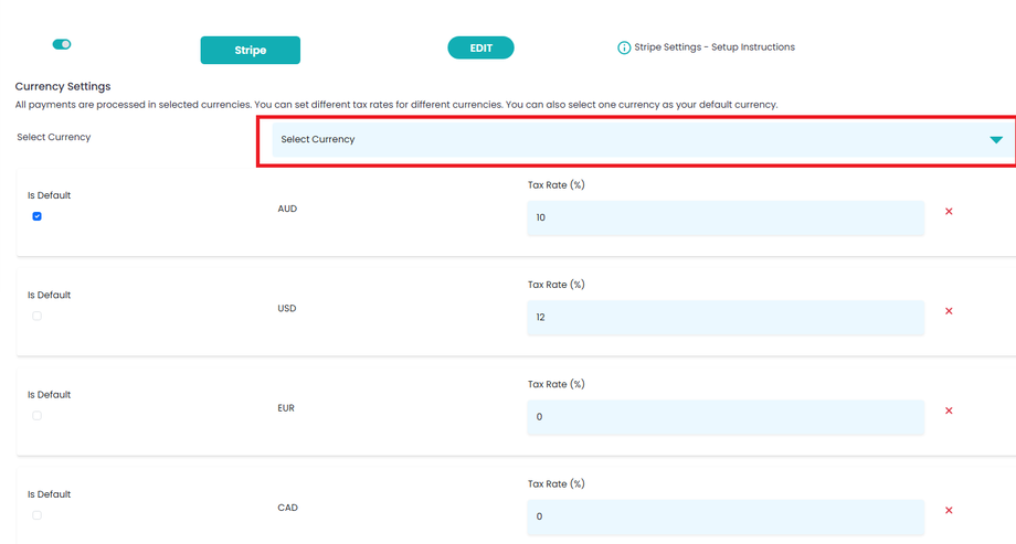 Note: If you do not select a default currency, the system will automatically set your default to AUD (Australian Dollar).