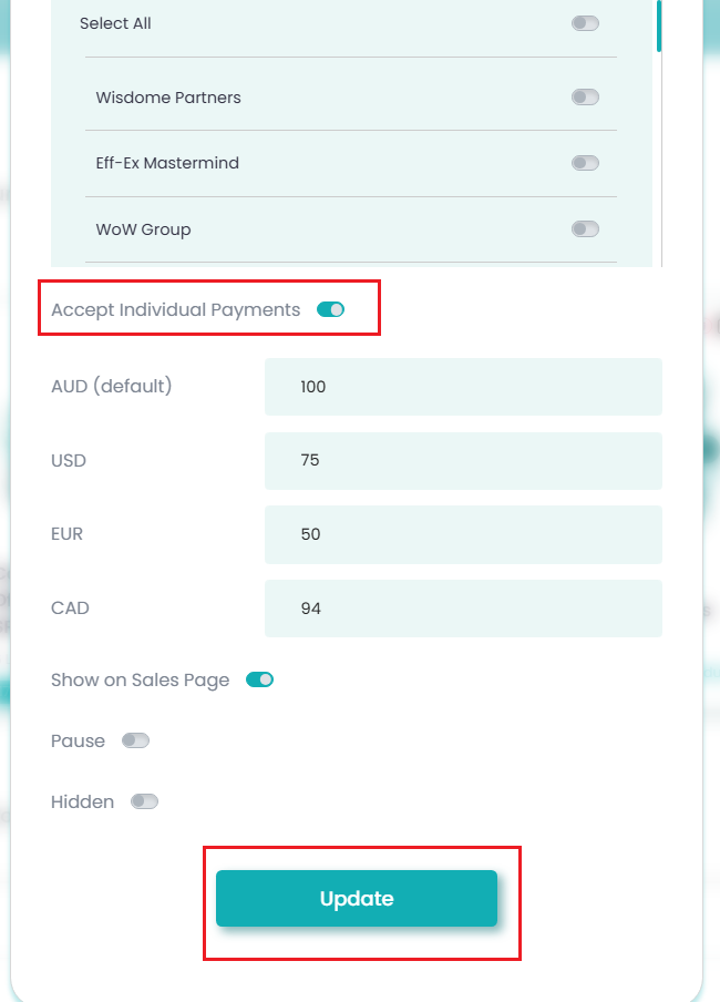 The next step is to set the prices of your programs/courses in the different currencies you have selected previously.