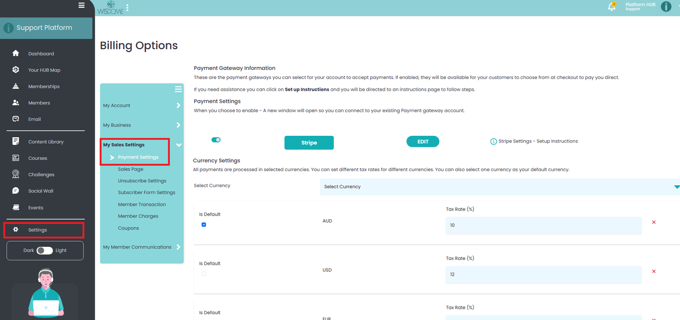 If you haven't activated your payment settings, please check our guide here: How to Activate Stripe Payments on Wisdome