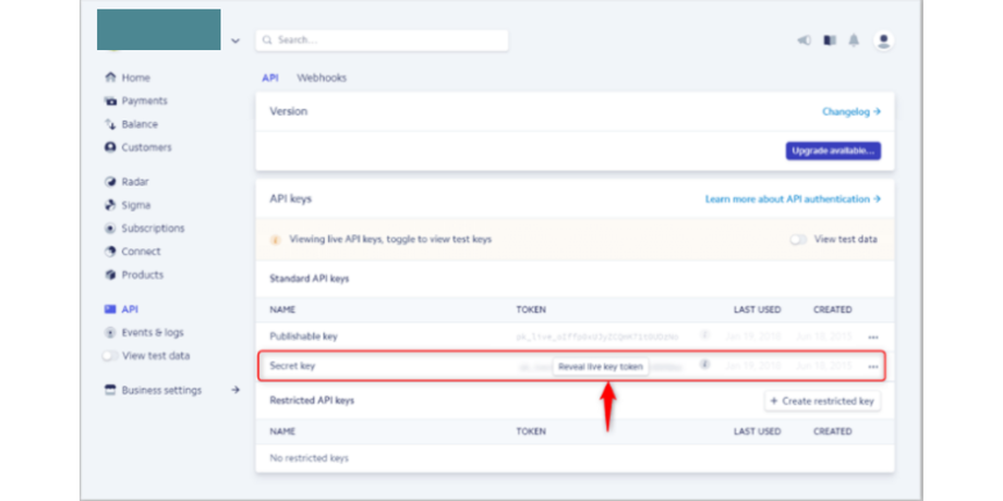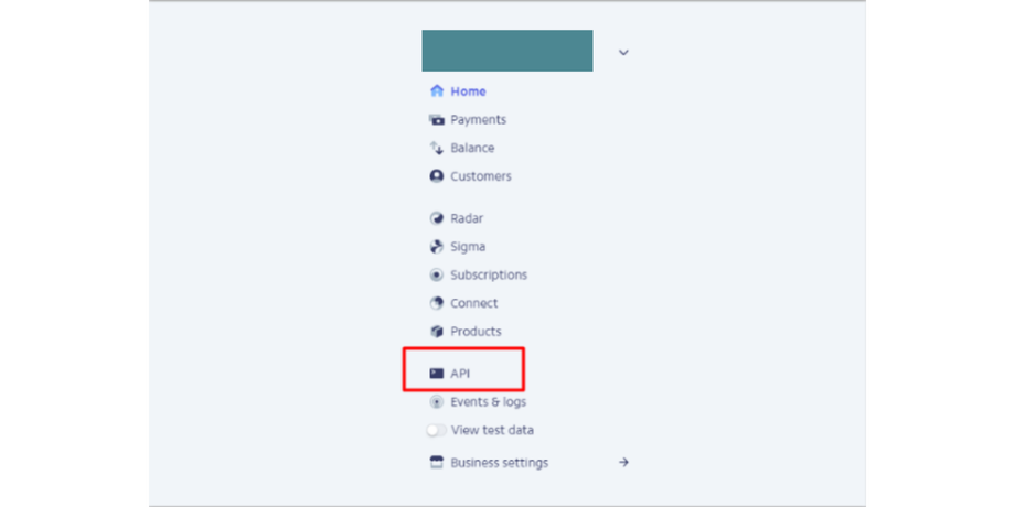 Open the Stripe Dashboard. Then, find and click on the “API” tab in the left sidebar.