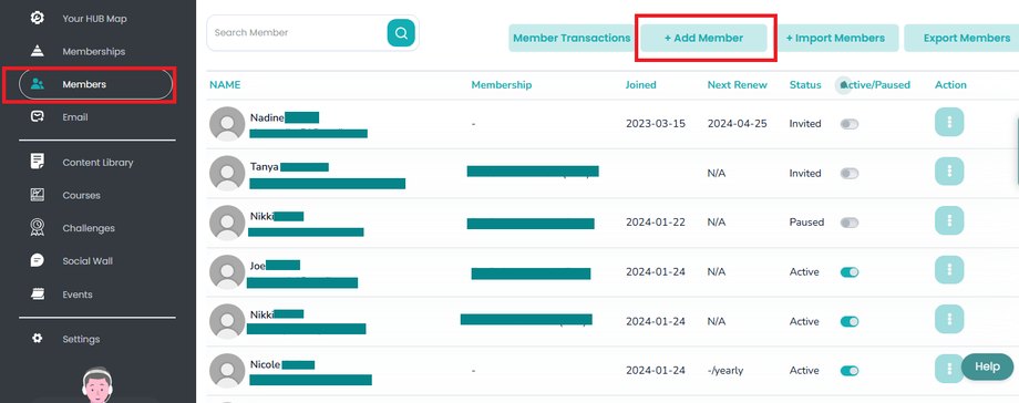 You can individually add customers to your membership. This is particularly useful when adding a few members to your account. Here's how to proceed: