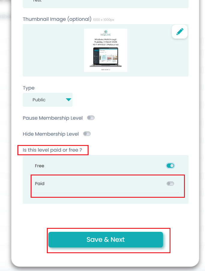 5. Under the ‘Is this level paid or free? ’ section, turn on the radio button beside 'Paid.'