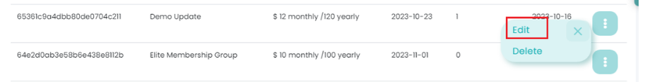 4. Click on the three-dot menu (⋮) at the right corner of the selected membership level and choose ‘Edit.’