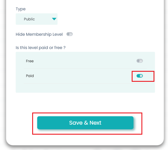 3.1. Activate the 'Paid' toggle button' and click the 'Save & Next' button.