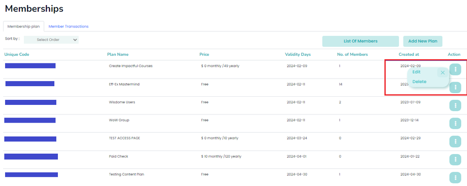 - Choose "Edit" from the options and update the details of your membership level.