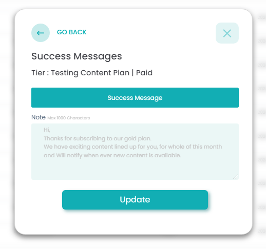 - Add your success message and click 'Update'.