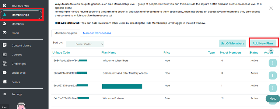 1. Click 'Memberships' from your sidebar menu and select the 'Add New Plan' button at the upper right corner of your screen.
