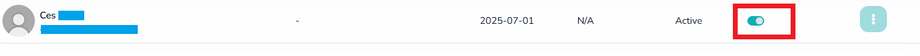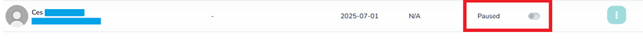 4. Toggle off the radio button under the ‘Active/Paused’ column to deactivate the member’s details.