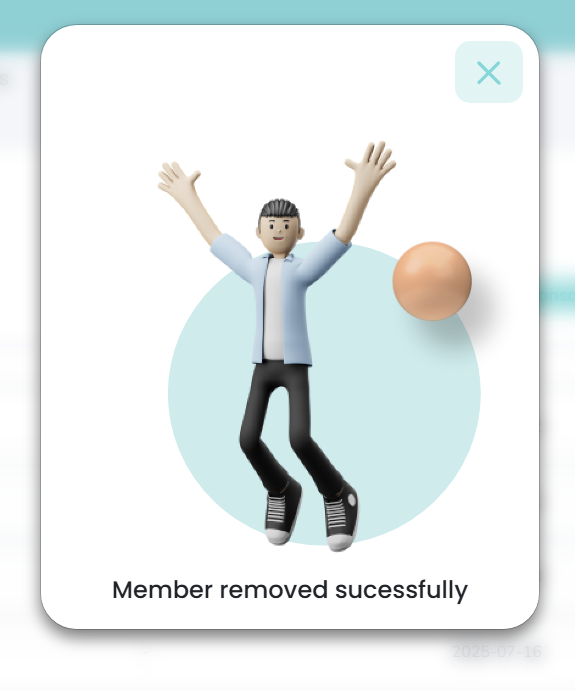 7. You'll see a confirmation message 'Member removed successfully' once your request is completed.