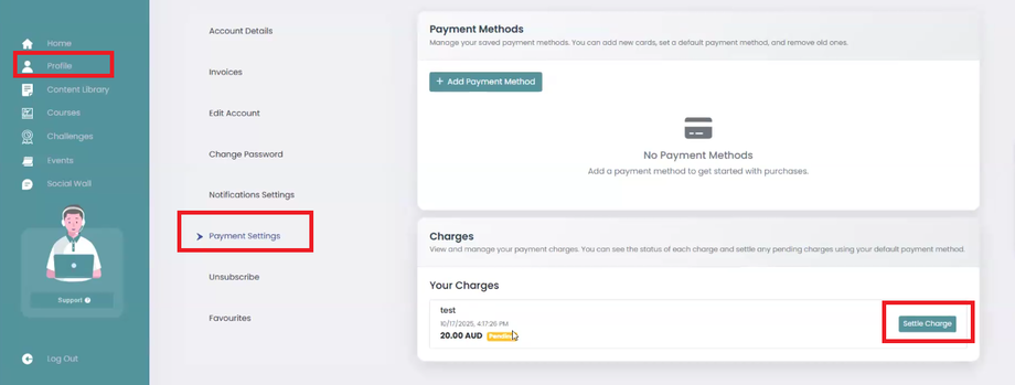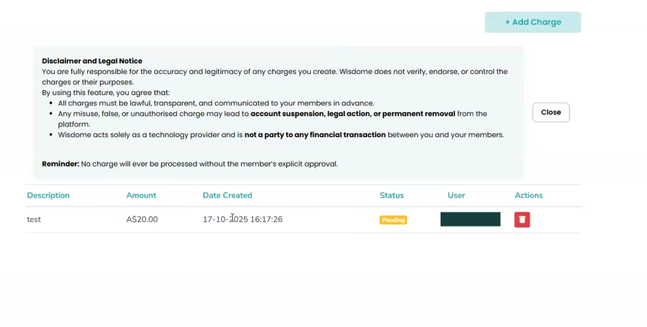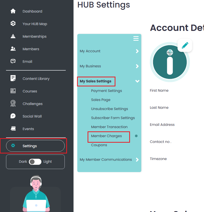 1. Go to ‘Settings → My Sales Settings → Member Charges.’
