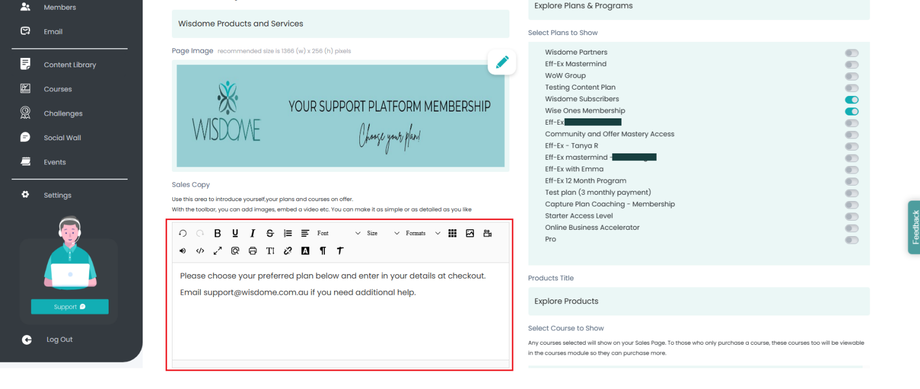 5. Enable the radio button for the plans and other products you wish to appear on your landing page.