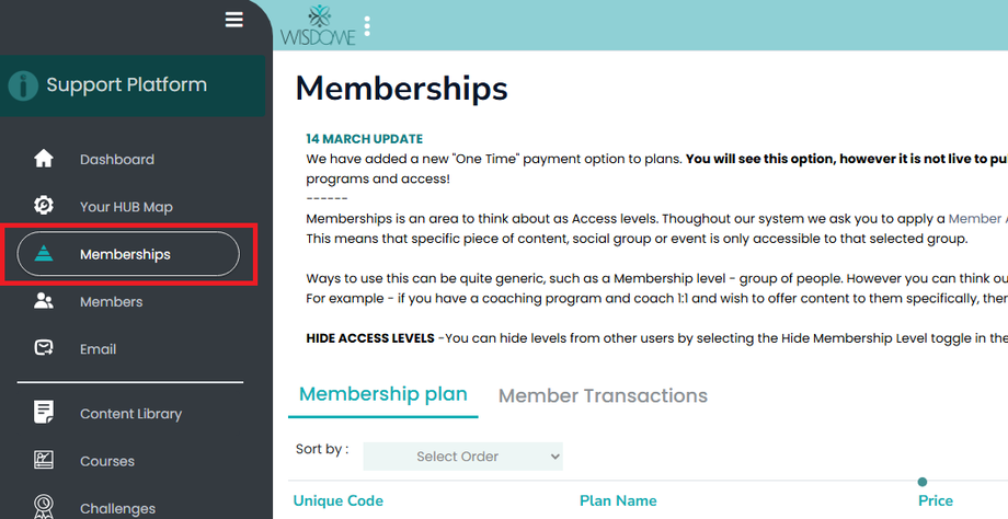 From the sidebar menu on the left, click on ‘Memberships’ to view your existing plans.