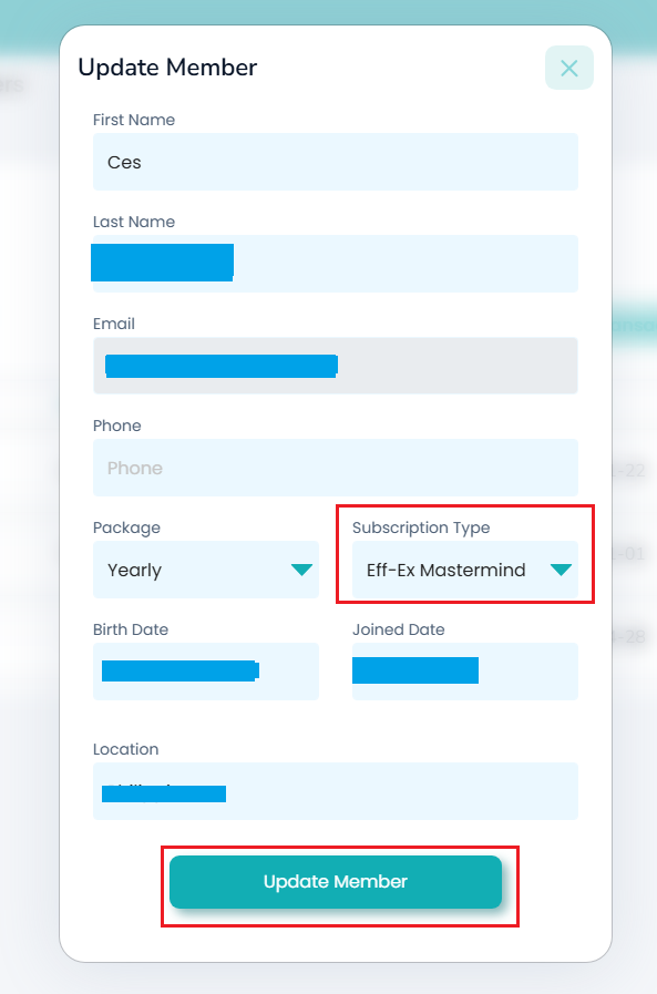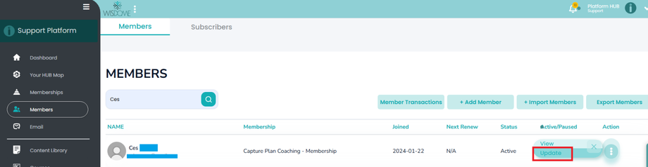 6. Click ‘Update Member’ to save the changes.