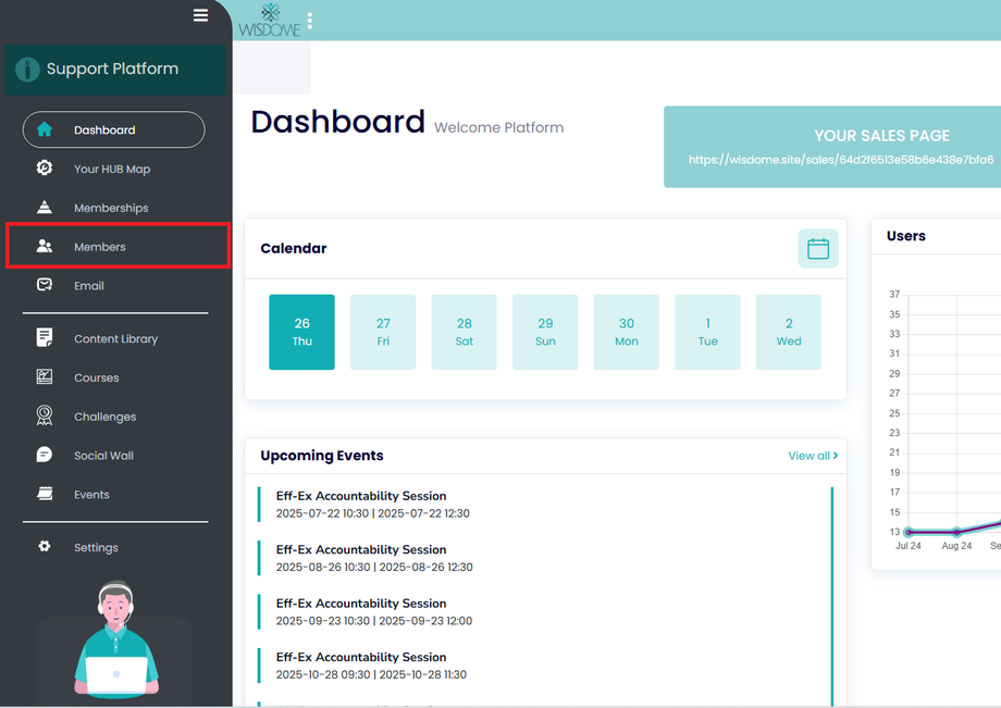 2. Click ‘Members’ from the sidebar menu.