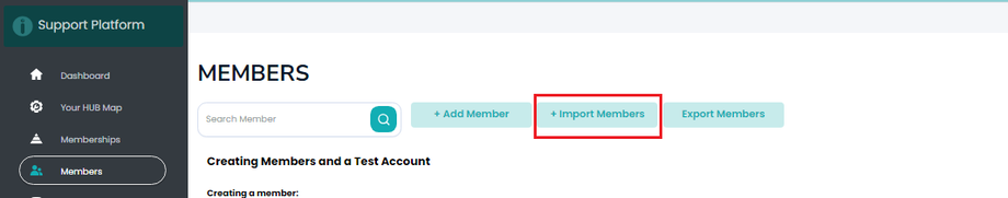 + Import Members: Upload multiple members at once.