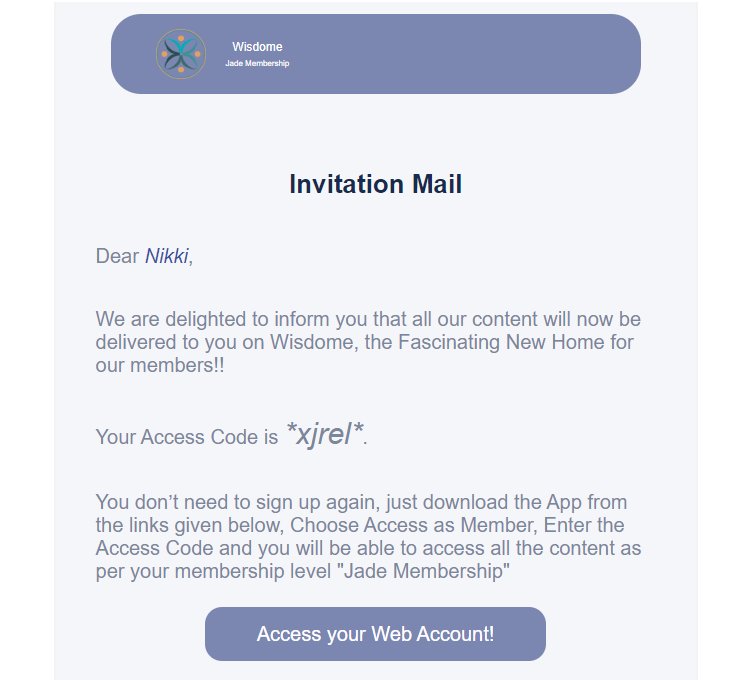 Below is an example of the email your members will receive when they are invited to your platform and the link, etc., they have to join you!