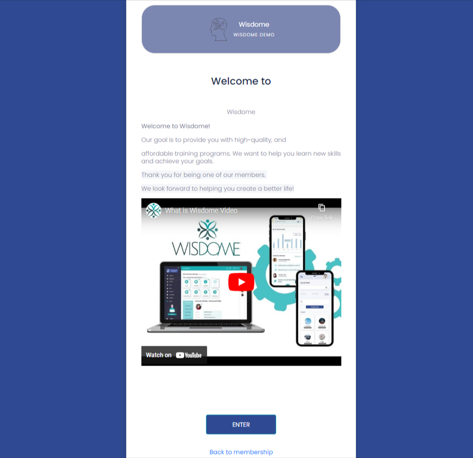 - Once member confirms email and adds password - they enter into your Welcome Page