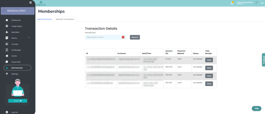 Once you have integrated your Payment Option and Created your membership levels, you can begin working with your members and view transactions. Our system whilst still new has introduced this option recently and we hope to build on this further in the future. For now, please see below how you can view transactions.