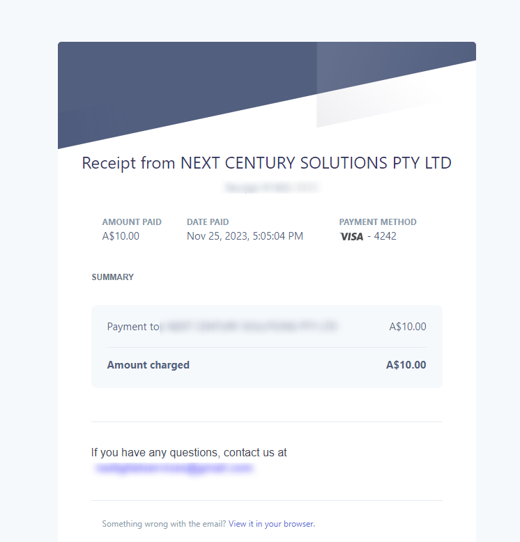 - View Receipt (This will direct you to the receipt from inside your Stripe account)