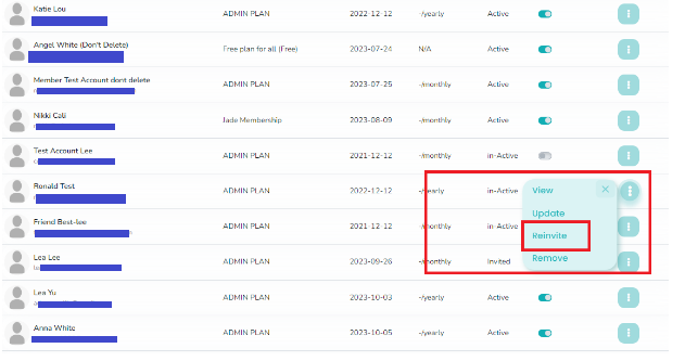 Choose “Reinvite” from the options. This action instructs the system to resend the access code to your member’s email.