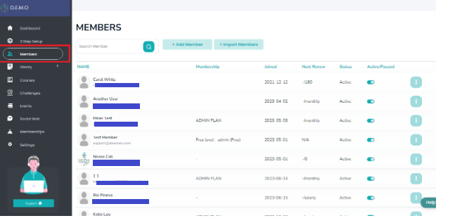 Once logged in, proceed to the ‘Members’ section, at the upper left-hand side of your dashboard.