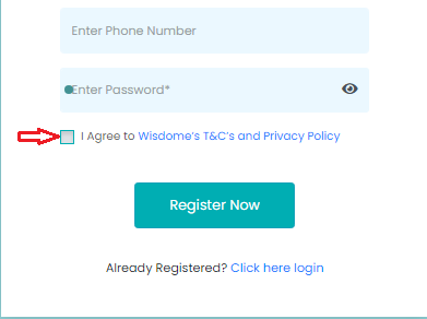 3. Please review our Terms and Privacy Policy, then tick "I agree to Wisdome's T&Cs and Privacy Policy" to confirm your consent.