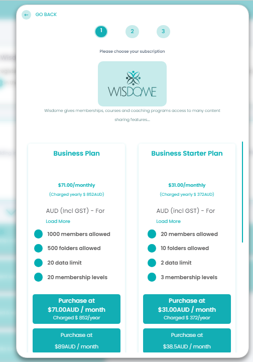 6. Click on the '3 Step Setup' button. This will direct you to Wisdome's subscription plans.