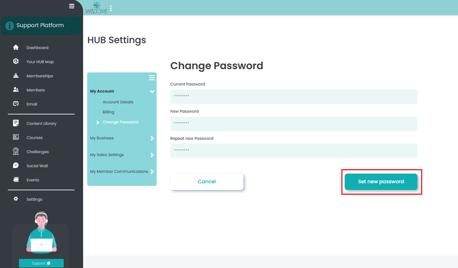 5. Re-enter your new password in the ‘Repeat new password’ field.